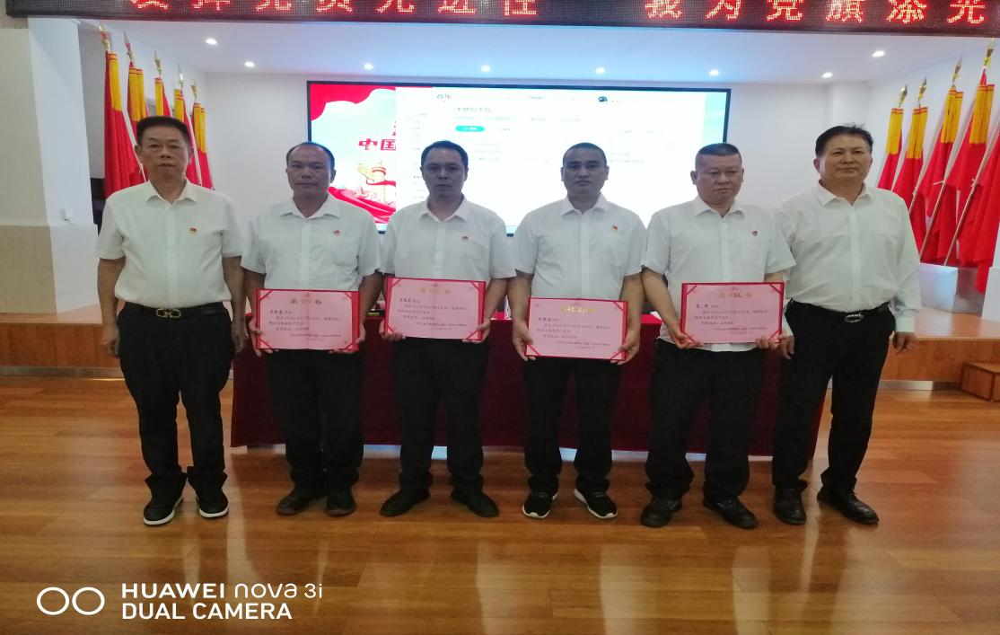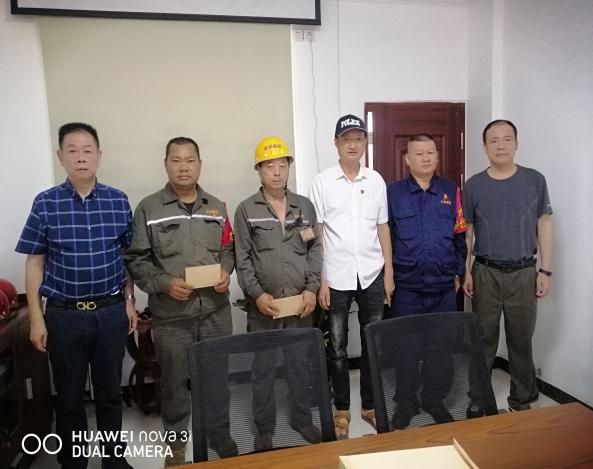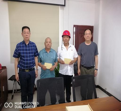 集團(tuán)公司總經(jīng)理李枝官、公司黨委書記李清順同志與受表彰的優(yōu)秀共產(chǎn)黨員普紹庭、王先龍、周德順、李輝4位同志合影留念。