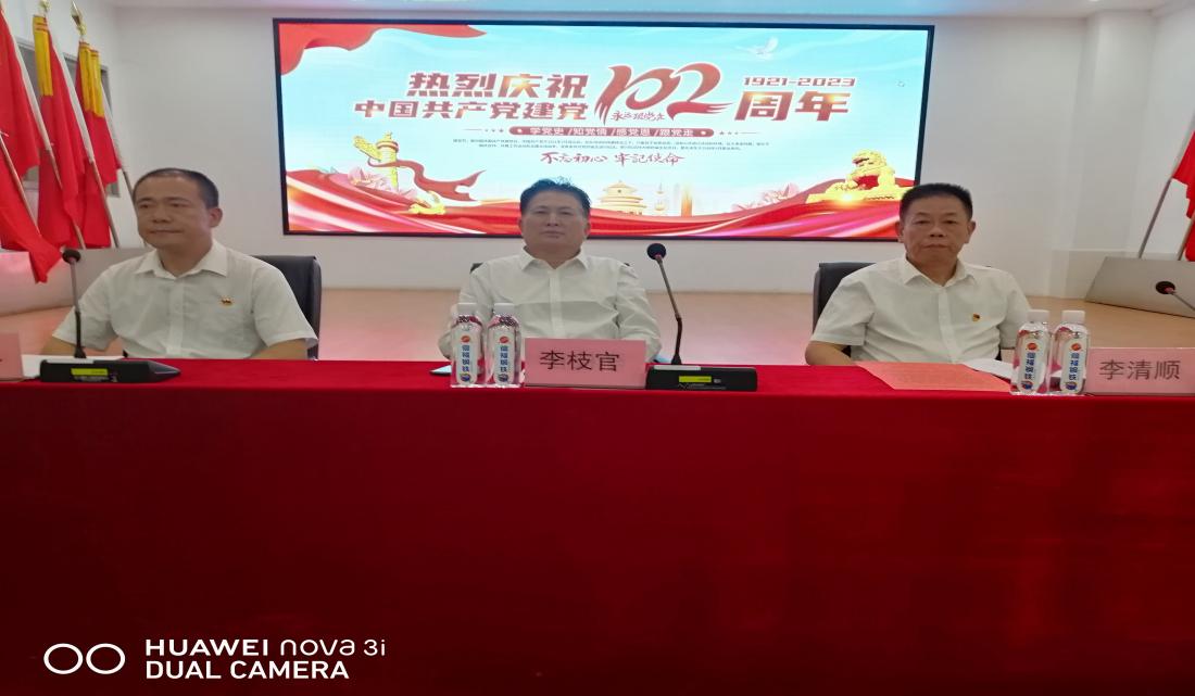 下午16:20時(shí)公司黨委在集團(tuán)公司三樓會(huì)議室舉行“七一”慶祝建黨102周年暨表彰大會(huì),會(huì)議由黨委副書記林圣干同志主持,主席臺(tái)就座的有集團(tuán)公司總經(jīng)理李枝官、公司黨委書記李清順同志和公司黨委副書記林圣干同志,參加慶祝活動(dòng)的黨員有110人,會(huì)議共有六項(xiàng)議程: