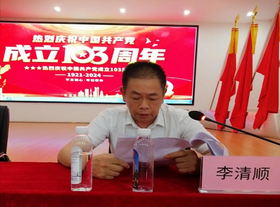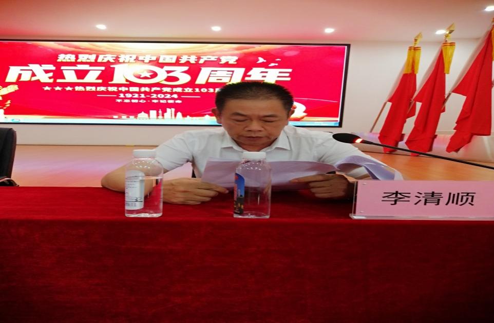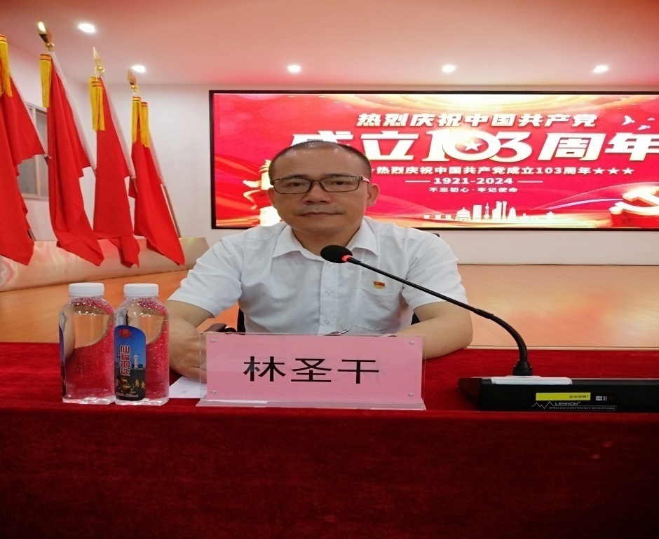 最后,公司黨委副書記林圣干同志作會議小結。首先,慶祝“七一”建黨103周年活動的重大意義;其次,肯定和執行領導講話精神;最后,回顧從1921年到2024年,中國共產黨走過了整整一百零三年的艱辛歷程。