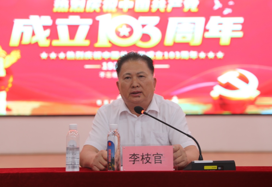 會上,回顧黨103年光輝歷程和對今后的黨建工作提出要求:(1)提高政治站位開展好黨紀學習教育;(2)夯實基礎,激發活力,提煉黨建工作特色;(3)強化理論學習,爭做勤于學習、善于思考的表率;(4)牢固樹立宗旨意識,爭做立黨為公、執政為民的表率;(5)嚴格遵守黨的紀律,爭做遵紀守法、清正廉潔的表率。