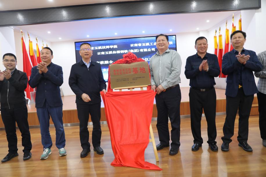 云南玉溪仙福鋼鐵(集團)有限公司李枝官總經(jīng)理和云南省玉溪技師學(xué)院黨委張紹東書記進行“教師企業(yè)實踐、學(xué)生實習(xí)實訓(xùn)基地”揭牌。