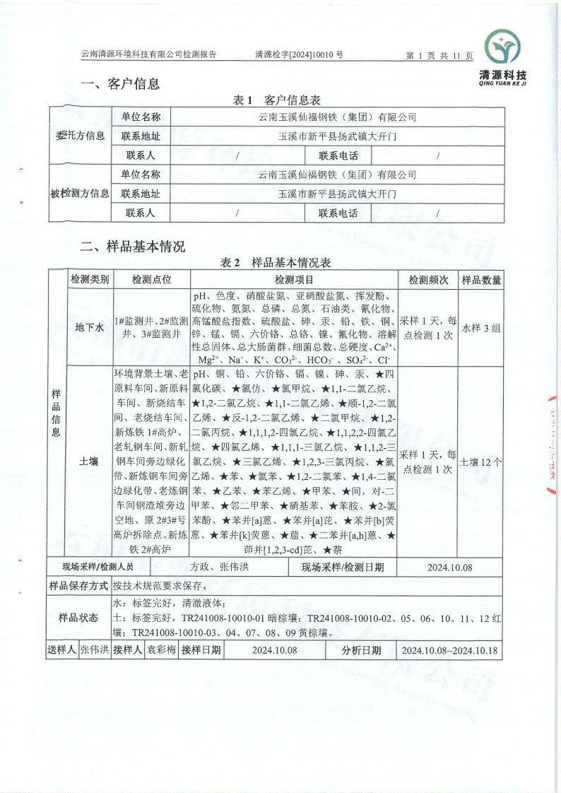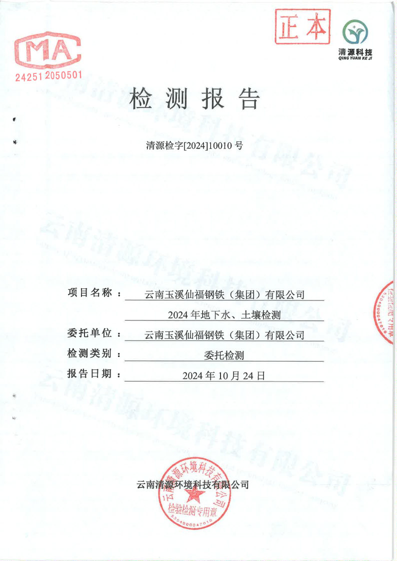 2024年云南玉溪仙福鋼鐵(集團(tuán))有限公司地下水及土壤檢測報告信息公開